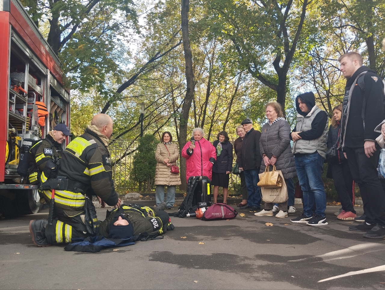 Профессионалы пожарно-спасательного отряда №203 разобрали для жителей несколько распространенных ситуаций, требующих срочной помощи, и в каждом случае продемонстрировали правильную последовательность действий.